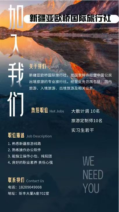 1长期17799185519乌鲁木齐浙商大大新疆知行合旅文化旅游发展有限公司从业本岗5年以上--