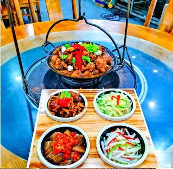 六安人尽皆知的吊锅名店,十个本地人九个都推荐。采用木炭煨煮,香气浓郁,锅底可选“土鸡公烧牛肉”,鸡肉紧实、牛肉鲜香,慢炖入味,一锅上桌热气腾腾,特别适合家庭聚餐或冬日围炉。品种丰富,烟火气十足,是本地人宴请的热门选择。